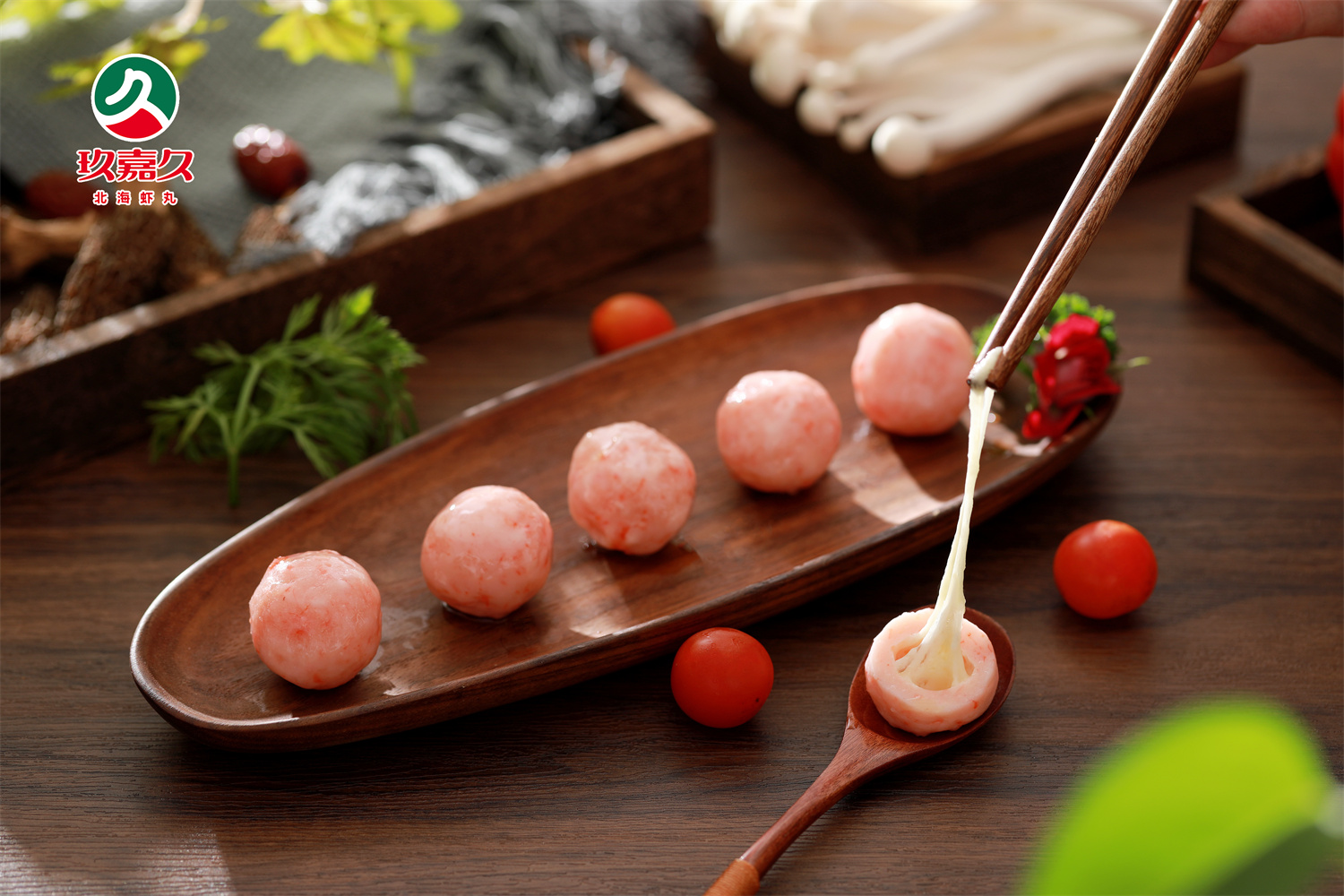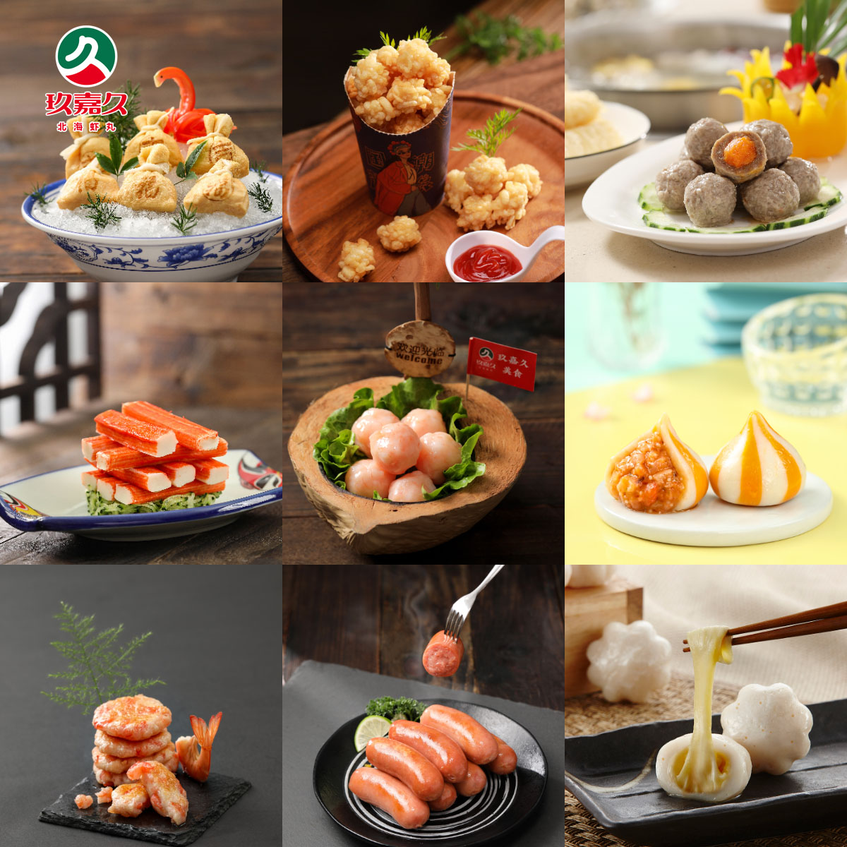 玖嘉久在行業(yè)深耕了27年,旗下產(chǎn)品涵蓋了蝦丸、魚丸、肉丸、福袋、蟹柳、餃類、餅類、腸類、炸物等九大品類。