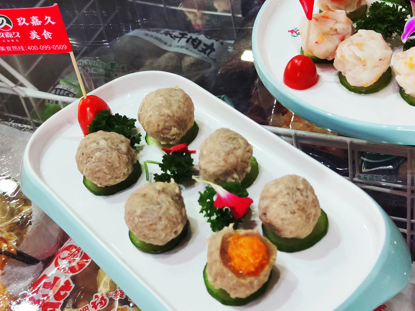 要說有什么產(chǎn)品是吃了后具有舌尖記憶感的,那非屬海鴨蛋蝦丸和爆漿牛肉丸了。展會現(xiàn)場,大家都對這兩款產(chǎn)品擁有好奇心,紛紛圍在試吃臺前等候美味出鍋。能讓大家如此好奇的原因,在于玖嘉久選用的是北海的海鴨蛋蛋黃作為內(nèi)餡,金沙流油,咸不壓鮮,使得原本平平無奇的蝦丸、牛肉丸創(chuàng)新結(jié)合出了新風(fēng)味,而這種帶著地方特色的美食也更容易在火鍋店爆紅,上市以來一直在火鍋門店受到推崇。