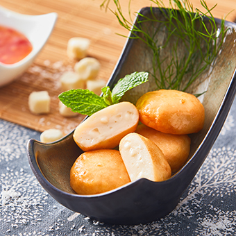 產(chǎn)品特性:西式芝士和中式魚豆腐的不期而遇,是食物遷徙煥發(fā)的魅力,一口咬下,綿糯而鮮美。