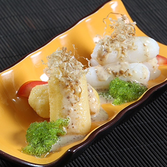 芝心燒、年糕熱水焯熟,撒上魚籽和木魚花,淋上千島醬即可。