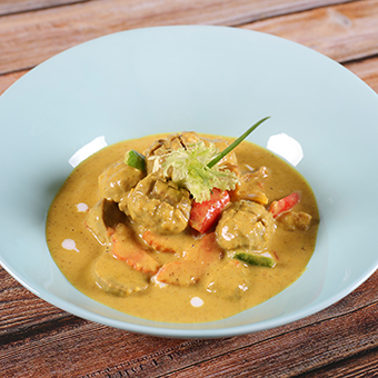 牛肉丸解凍,咖喱加水煮開,放入切花的牛肉丸和切好的青紅椒,收汁即可。