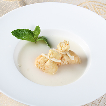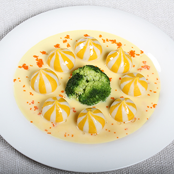 鮮蝦福袋提前解凍,放入提前熬制好的魚高湯中烹煮5分鐘即可。