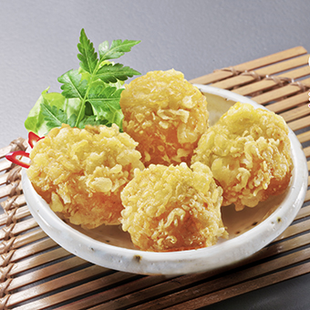 天婦羅蝦球提前解凍,放入熱油中炸至金黃即可。